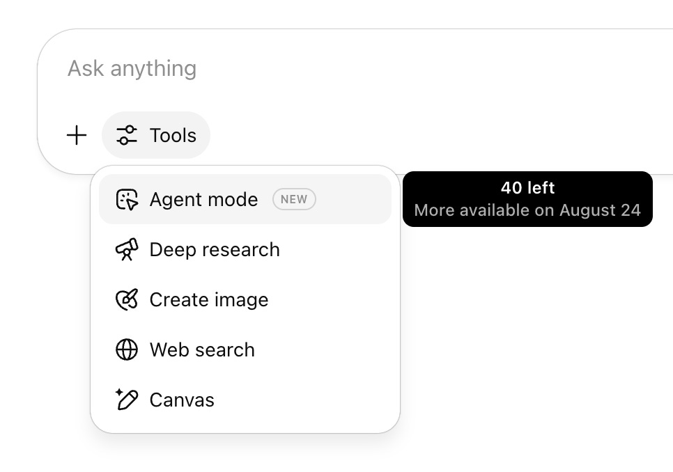 The latest update that I finally got my hands on. It combines ChatGPT Operator, Deep Research and ‘regular’ ChatGPT. Agents do things for you.